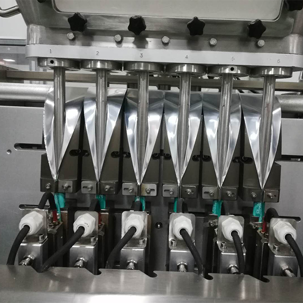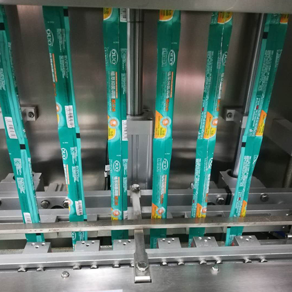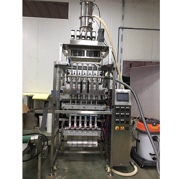 多列粉末包裝機(jī)是專門用來(lái)包裝條狀粉末類型物料的,采用螺桿計(jì)量裝置自動(dòng)進(jìn)行物料的計(jì)量,每一列數(shù)對(duì)應(yīng)一個(gè)螺桿計(jì)量裝置,也就是說(shuō)10列粉末包裝機(jī)就有10個(gè)螺桿計(jì)量機(jī)。另外這臺(tái)多列咖啡粉包裝機(jī)還配置了一個(gè)吸塵器,一般情況下多列機(jī)包裝粉末的時(shí)候,在下料的過(guò)程中會(huì)有揚(yáng)塵的現(xiàn)象,不除去揚(yáng)塵,會(huì)導(dǎo)致封口不密封,封口不美觀,這個(gè)吸塵器的作用就是把揚(yáng)塵吸掉,保證密封性,增加封口的美觀度。