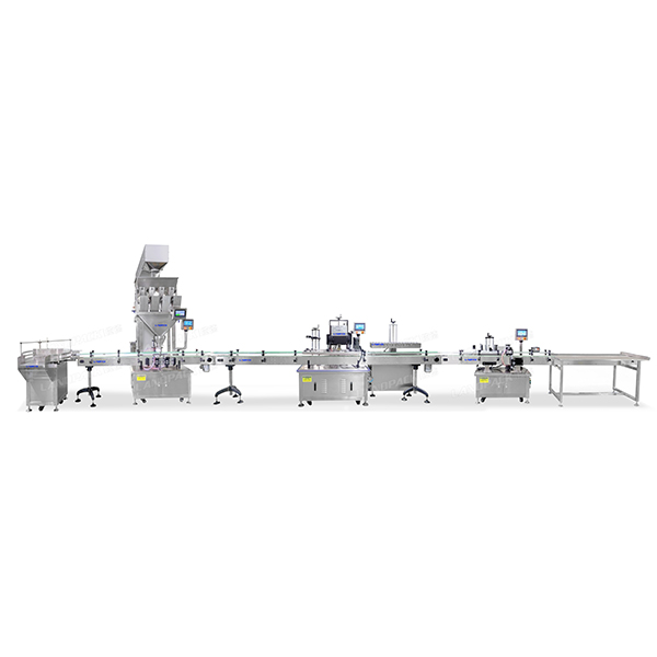 此自動灌裝生產(chǎn)線適用于各種顆粒狀和固體物料的灌裝填充。以線性稱為計量方式,精度高,與旋蓋機、鋁箔封口機、貼標(biāo)機組成自動化生產(chǎn)線,該生產(chǎn)線運行穩(wěn)定、噪音低、操作簡單、適應(yīng)性廣并符合GMP認(rèn)證要求。