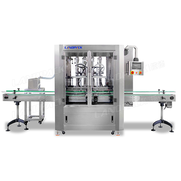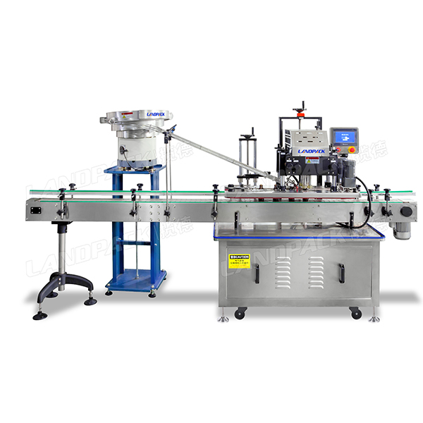 2.本線采用自動送瓶、4頭伺服活塞灌裝機、振動盤自動上蓋、四輪旋蓋機組成自動化生產線;