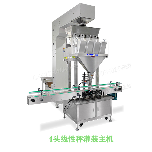 2.本線采用自動送瓶、線性秤灌裝機、四輪旋蓋機、對夾式定位圓瓶貼標(biāo)機、收集平臺組成全自動化生產(chǎn)線;