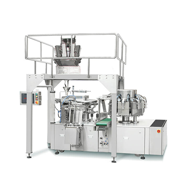 1、全自動旋轉式給袋真空包裝機由兩種分離的旋轉式機體組成(分別為充填系統(tǒng)和真空系統(tǒng));