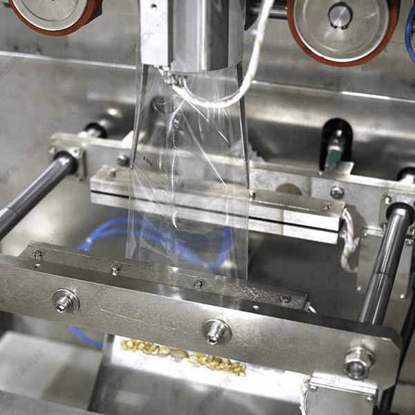 這款膨化食品包裝機械設備可以實現(xiàn)自動送料、稱重計量、制袋、充填、封口、打印日期和成品輸出等一系列步驟,無需人工干預,除了最開始需要人工倒入物料以外,其余環(huán)節(jié)都是全自動完成。