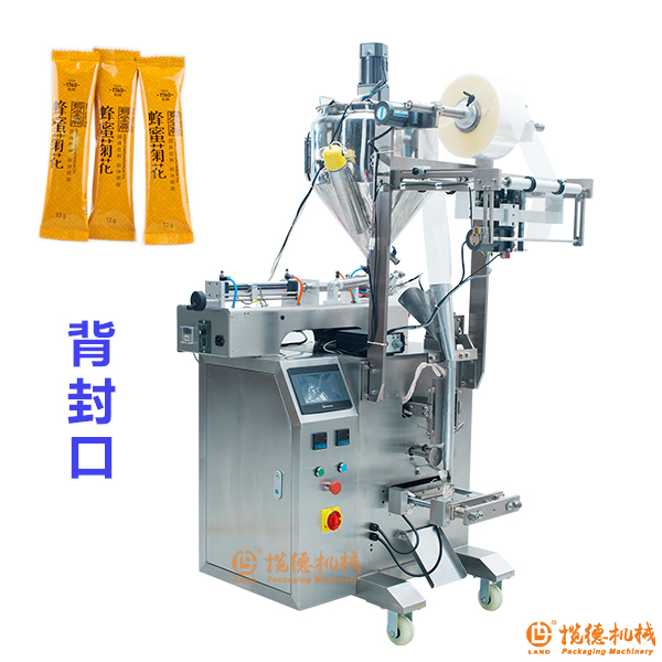 市場上的小包裝蜂蜜,剛好是用這款小型蜂蜜包裝機進行包裝。本公司包裝蜂蜜的機器有兩款類型,一款是包裝邊封形式的:包括三邊封、四邊封;一款是包裝背封類型,滿足了市場上面的袋裝形式要求。