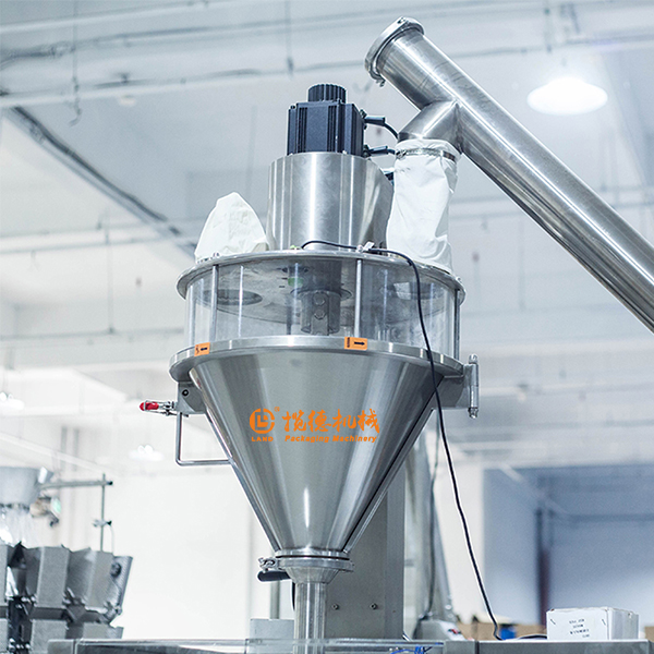 此款大袋包裝機(jī)是我司針對(duì)市場(chǎng)上大袋類(lèi)型的包裝進(jìn)行開(kāi)發(fā)設(shè)計(jì)的,該機(jī)主要由螺桿物料提升機(jī)、螺桿計(jì)量機(jī),包裝機(jī)主機(jī)構(gòu)成。主要工作流程:工作人員把物料倒入料箱里面,通過(guò)螺桿提升機(jī)把粉末輸送到螺桿計(jì)量機(jī)里面進(jìn)行物料的計(jì)量,計(jì)量好每包克重以后,下料到袋子當(dāng)中,然后封口,成型輸出。