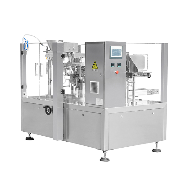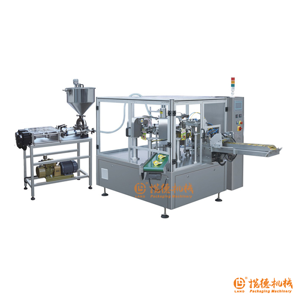 該設備由旋轉式全自動給袋包裝機與液體灌裝機組成。主要適用于:液體、醬體、膏體類如:消毒液、洗滌劑、果汁、火鍋底料、番茄醬、花生醬、果醬、辣椒醬、豆瓣醬等物料的全自動包裝作業(yè)。