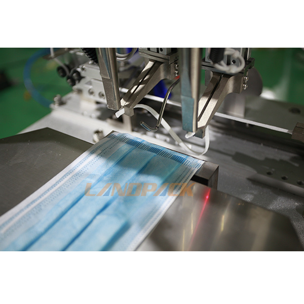 這臺(tái)機(jī)器比起那種小型焊接機(jī)效率比較高,不需要人工提前把耳線進(jìn)行修剪。機(jī)器自動(dòng)完成耳帶的切斷,我們只需要把耳線掛到機(jī)器即可。