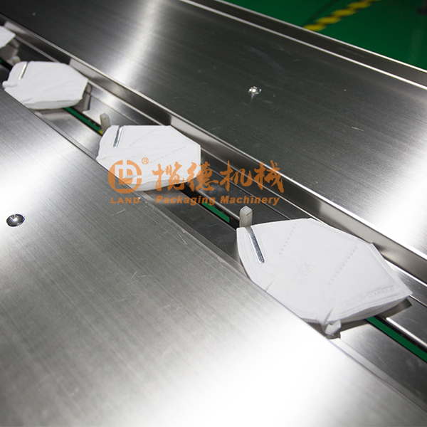 該機(jī)的操作流程是:操作人員手動(dòng)把需要包裝的一次性口罩、平面口罩、N95口罩、KN95口罩放入托盤(pán)傳送帶當(dāng)中,然后傳送帶把口罩輸送到包裝機(jī)里面,然后配合漩渦氣泵在袋子封口的時(shí)候進(jìn)行抽取氣體,經(jīng)過(guò)卷膜、制袋、封口等一系列環(huán)節(jié)完成包裝過(guò)程